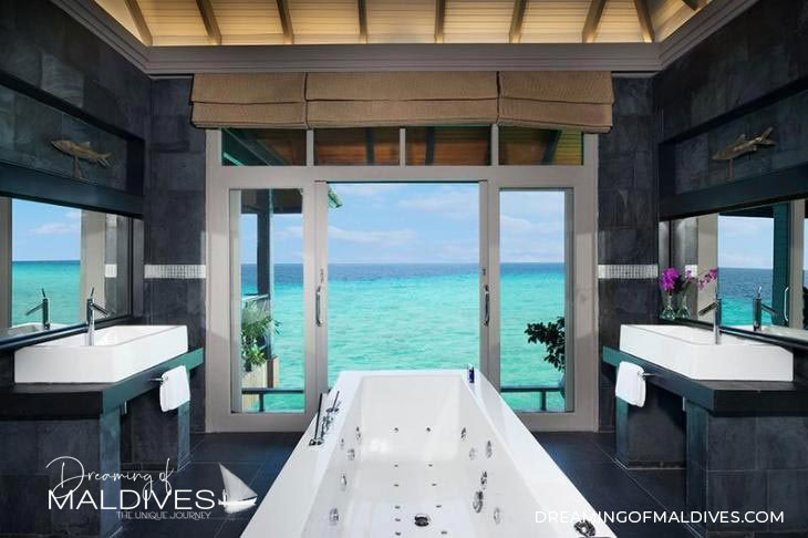 Here is a list of the most beautiful Hotel bathrooms in Maldives. Over-sized bathtubs with hydrotherapy, Sunset views, Champagne, sexy jacuzzis, huge bathrooms within tropical gardens, lately, Maldives hotel bathroom concepts have evolved into super dreamy spaces.
