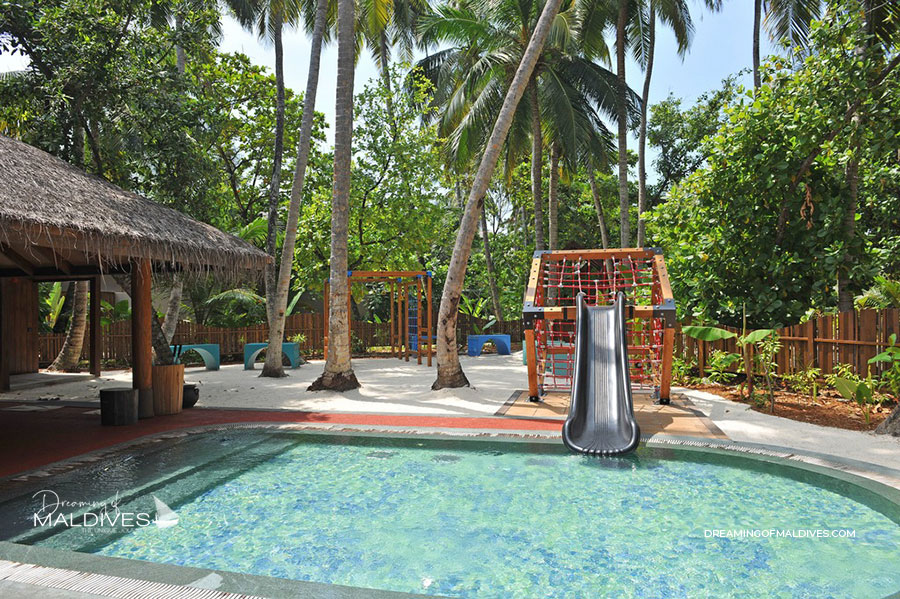 Joali kids club has a kids pool with water slide, indoor and outdoor play areas and activities. Kids will also enjoy treasure hunts, cooking classes, a children’s spa and several other weekly activities.