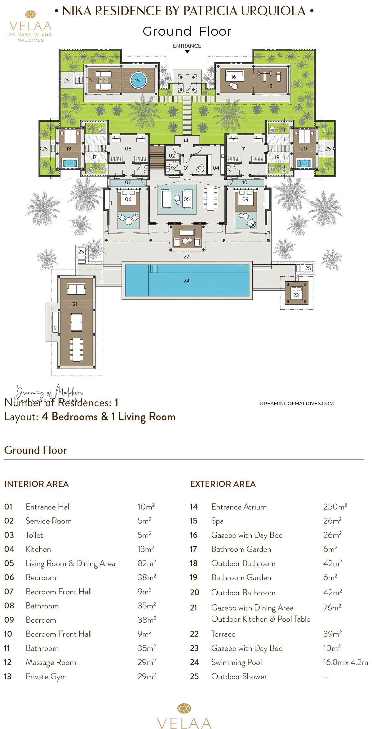 The Velaa Private Residence offers elegant contemporary design and immense private interior and exterior space, inclusive of two terraces, a pool and a courtyard.