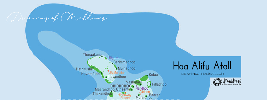 Explore Haa Alifu Atoll with a map showing the resorts, the local islands and discover more about its particularities.