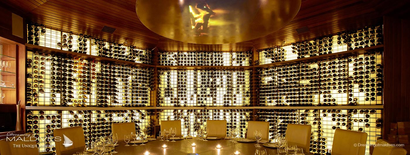 Enfin, véritable trésor caché, Vinum plonge les convives sept mètres sous le sable dans une cave à vin spectaculaire, la première du genre aux Maldives. Avec ses 6000 bouteilles, son atmosphère dorée et feutrée, et la promesse de découvertes de grands crus guidées par un sommelier passionné, l’expérience est unique et mémorable.