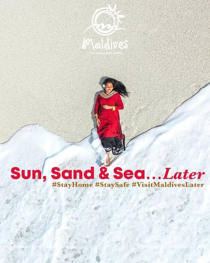 La campagne, uniquement lancée sur le web via les réseaux sociaux, propose 11 affiches illustrant différents moments de rêve aux Maldives et utilise les hashtags #VisitMaldivesLater #StayHome et #StaySafe