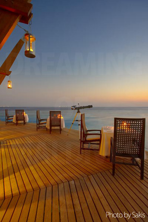 Shafeeq a souhaité faire du Lighthouse un restaurant unique en son genre et avant-gardiste grâce à un design élégant et étonnant et à sa vue surélevée sur le lagon, mais aussi un lieu permettant de parfaitement combiner intérieur et extérieur les systèmes d’ouverture ingénieux et discrets permettent d’avoir une vue panoramique sur l’extérieur et une atmosphere « cosy » et lumineuse. L’ensemble est realisé en teck, bois de cocotier et métal afin de lui donner un style Maldivien contemporain.