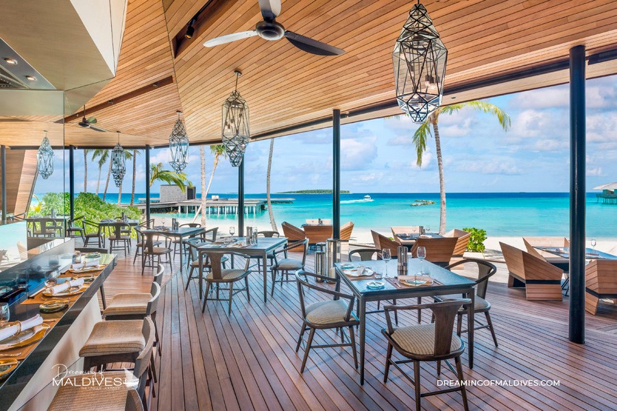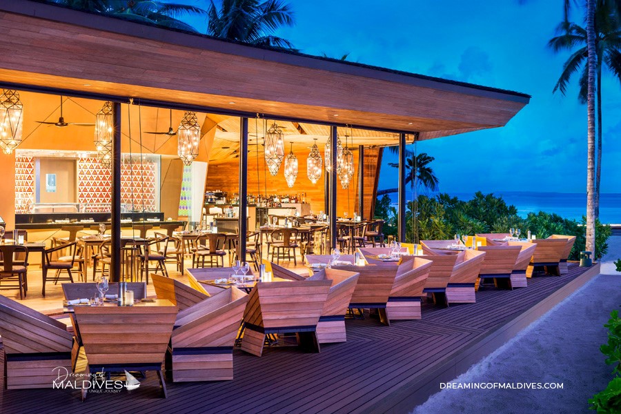 Un large éventail de gastronomie et d’expériences culinaires sont au rendez-vous avec un restaurant de spécialités asiatiques, un restaurant italien, un restaurant et cave à vin souterrain, un restaurant sur la plage, un bar tapas sur pilotis avec vue sur le coucher de soleil et un restaurant snack aux saveurs du Moyen-Orient dans la jungle.