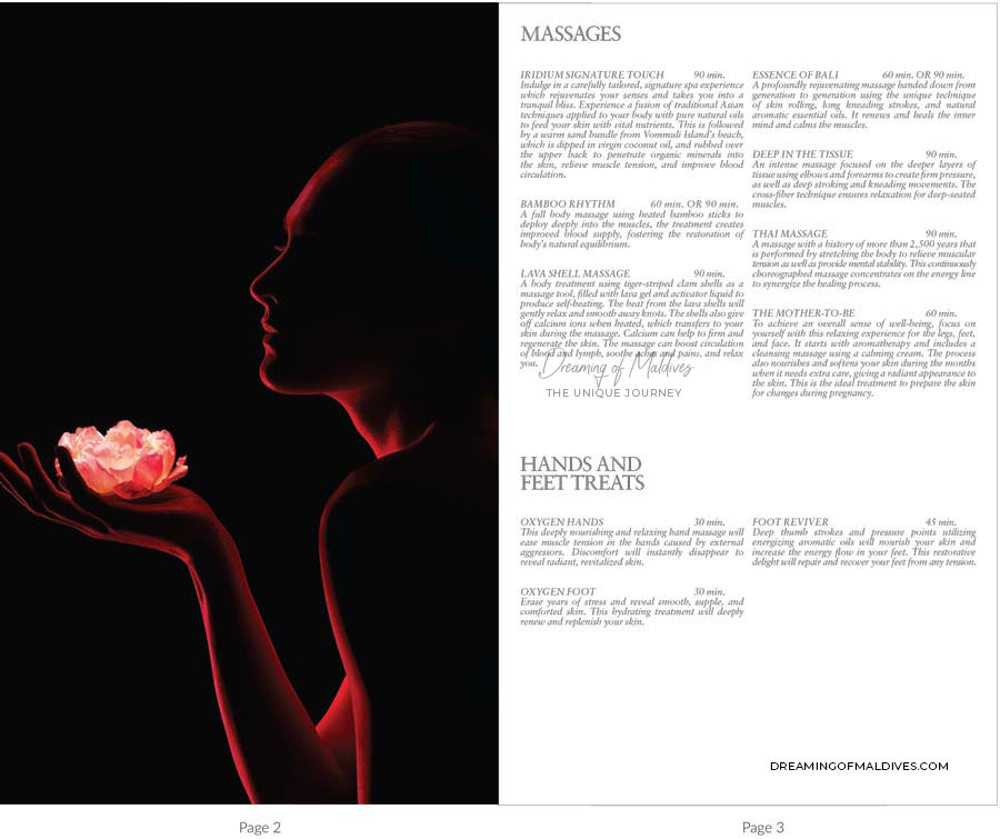 IRIDIUM SPA Massages and Treatment prices