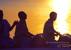 Along with the drums, dancers slowly starts to sing a slow dhivehi song in a very languorous vocal that will progressively rise and speed up.