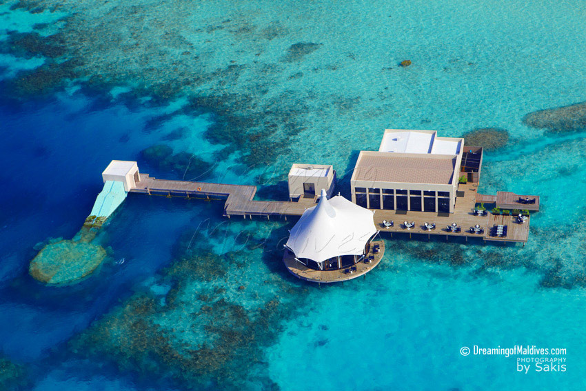 The concept is about freedom of choice : you can spend your day funboarding on the vast lagoon, enjoy romantic dining or a tribal-inspired dinner, then descend underwater to Subsix for a cocktail or to dance. At sunrise, wake up in your overwater villa to nothing but calm and endless blue.