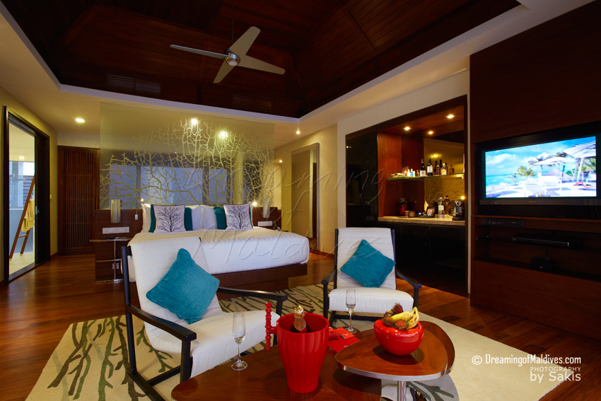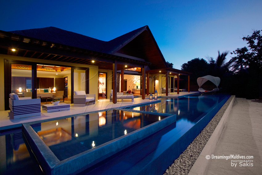 Great size private pool | Terrace with dining area | Indoor–outdoor bathroom with rain shower and bathtub | King-size bed | Full air-conditioning & ceiling fans | Wi-Fi | IDD telephone | LED TV with Bose surround-sound theatre | Private in-room DVD player & selection | Espresso machine | Full-size refrigerator (Deli-In) | Personal safe | Hairdryer | Pillow menu | Bathrobes & slippers | Complimentary L’Occitane toiletries | Mosquito repellent | Torches | Golfing umbrellas | Personalised bicycles | Games, books & digital newspapers | Butler service (Thakuru)