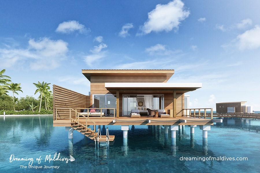 The resort accommodation is split between 36 overwater villas 63 island based villas and will feature a central pool stretching 150 metres, an overwater spa, several dining options and various recreational opportunities.