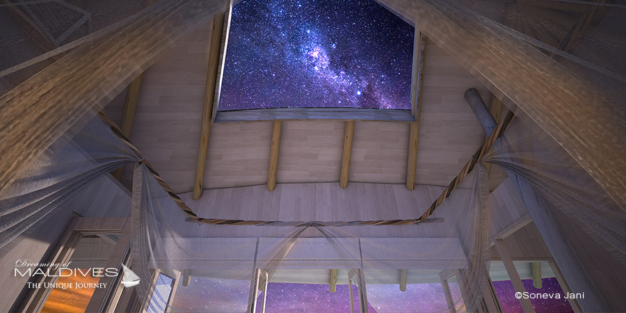 Soneva Jani. The latest Maldives Dreamy Resort. 5.6 kilometer lagoon of crystal clear waters with uninterrupted 360° views of the Indian Ocean and extraordinary Water Villas. Every water villa has a private pool and opens to its own stretch of lagoon, with some villas featuring slides going directly from the top deck into the lagoon below. The highlight of the villas is the retractable roof in the master bedroom, which slides back at the touch of a button so that guests can lie in bed and stargaze. A Dream Come True.