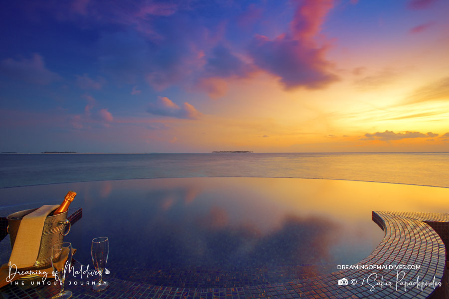 The chic and so romantic Honeymoon Select Ocean Villas are built on their own dedicated jetty on the tiny One Banyan Island with an open view at the extraordinary Maldivian sunset.