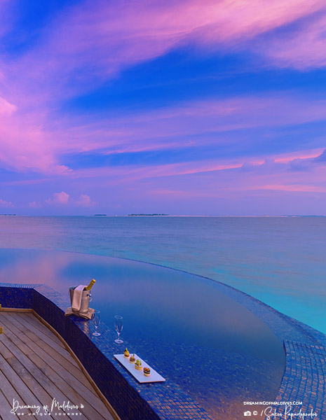 Then, we loved the resort architecture and style which blends modernity and tropical chic design without compromising on the Maldivian touch that we personally consider as essential.