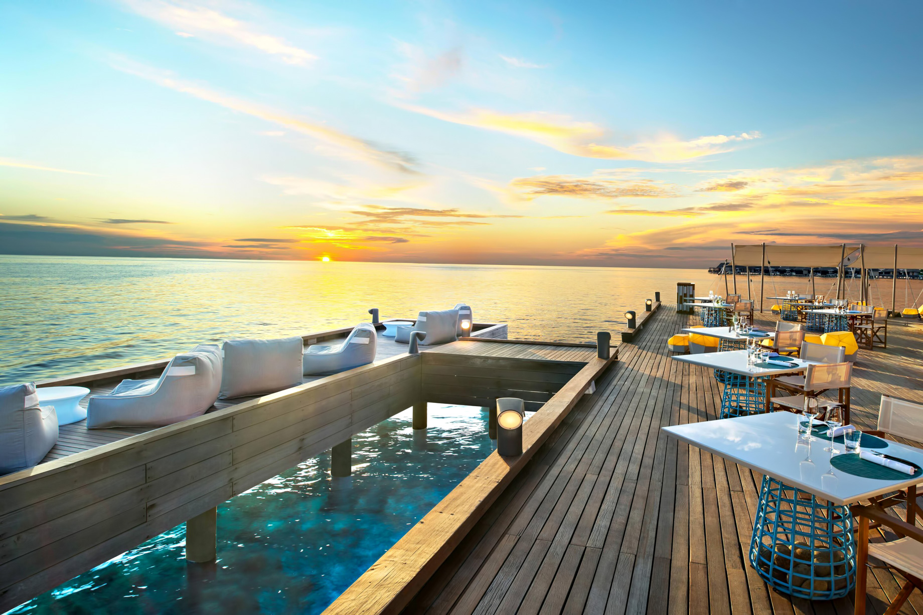 W Maldives features a fine selection of Dining with an eclectic mix of 6 stylish and inventive bars and restaurants and the only underground nightclub in the Maldives. The resort transcends traditional cocktail expectations with a resident Mixologist and your own cocktail set in the water villas.